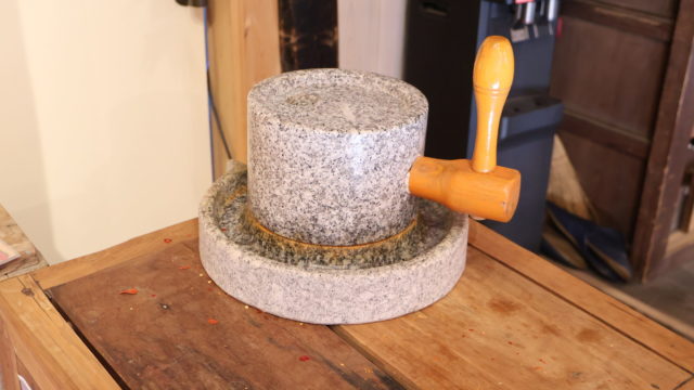 好きな唐辛子を4本選び、石臼をぐりぐりと回して…マイ一味の完成です!