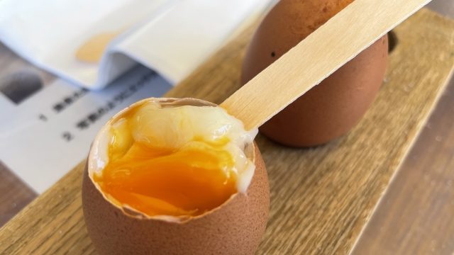 カフェの一角で温泉卵作りが体験できます!