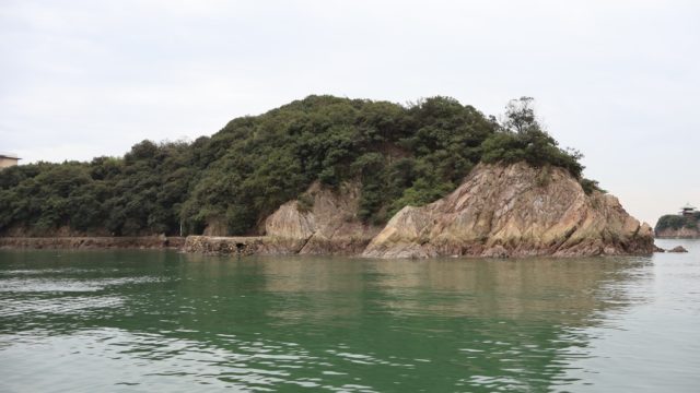 全体が赤・白・黄・青・黒の5色の地から成り立っている仙酔島。